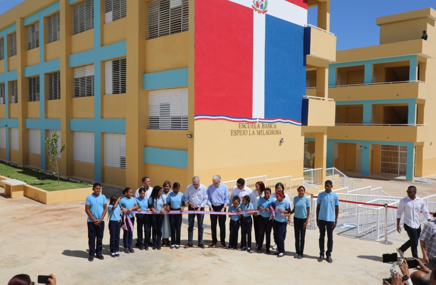 El presidente Luis Abinader inauguró, tras 14 años de espera, la Escuela Básica Espejo La Milagrosa, apostando desde el Gobierno por la continuidad de un mejor nivel educativo y más y mejores oportunidades para todos los niños y niñas, sin distinción.